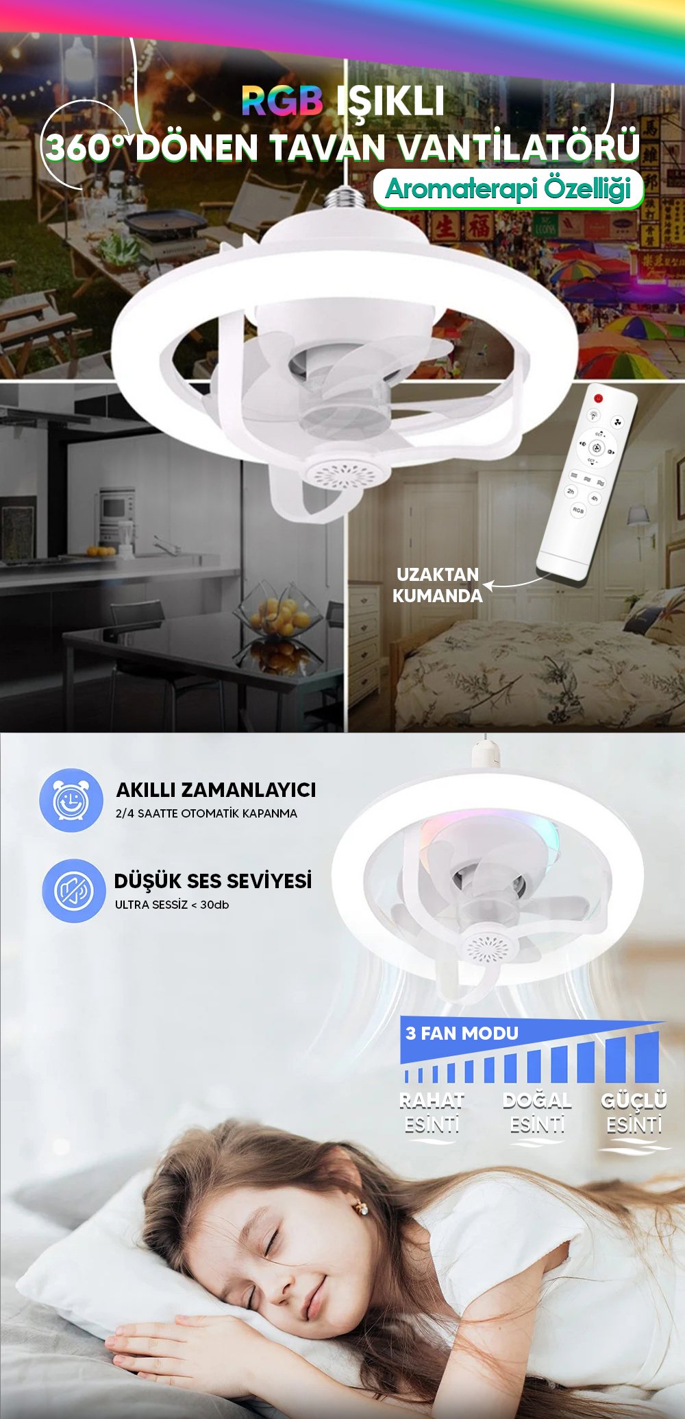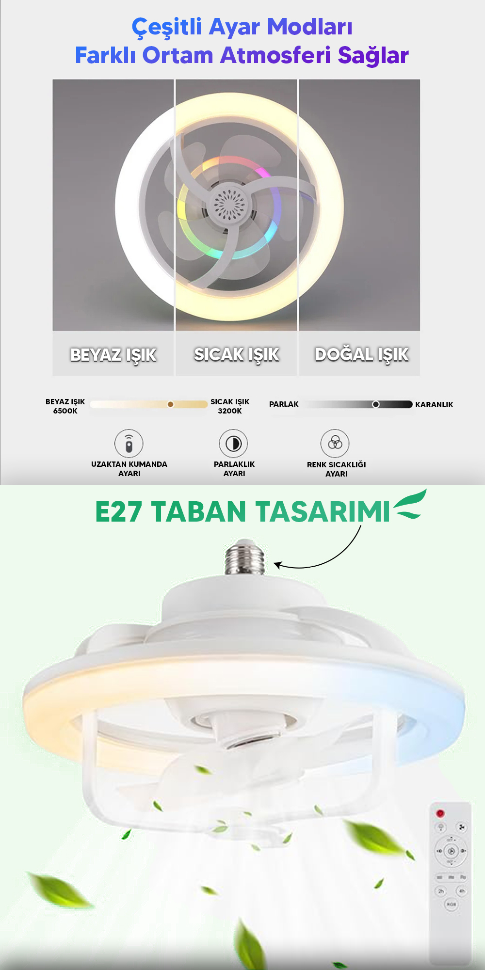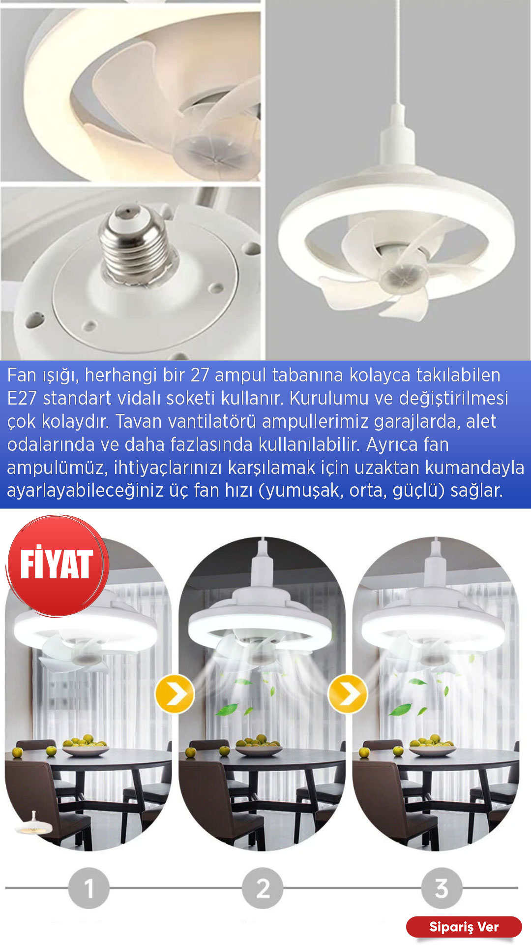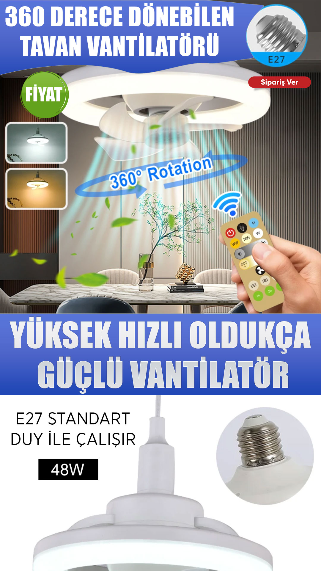 3 Adet 360 DERECE TAVAN LAMBASI -